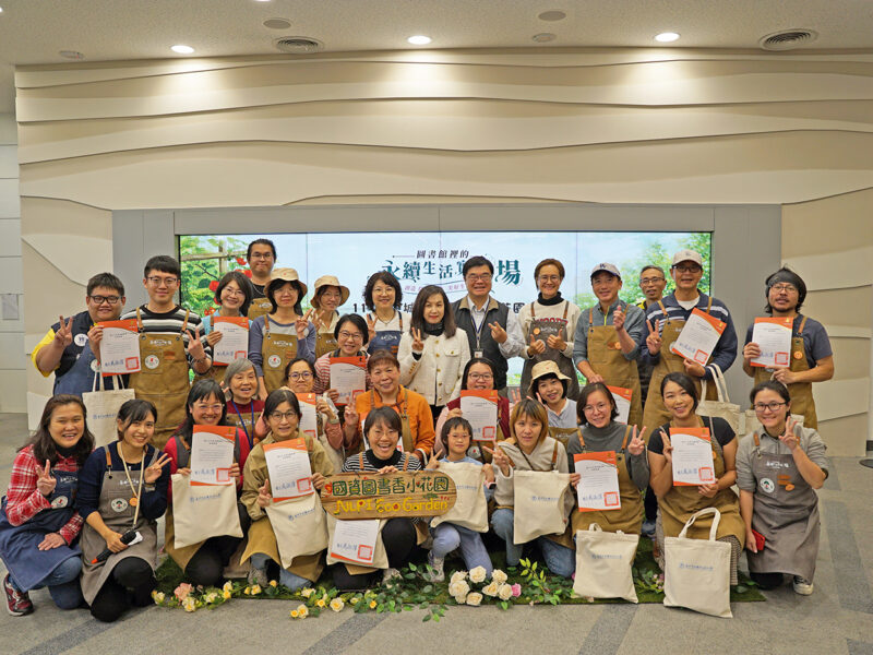 國資圖指出,「圖書館裡的永續生活實驗場」核心概念源於圖書館對公共議題的長期關注,希望透過「種土、種人、種知識」結合閱讀推廣、環境行動與社群參與,回應氣候變遷、生態保育與永續生活等議題,並呼應聯合國永續發展目標(SDGs),計畫亦融入樸門永續設計「照顧地球、照顧人、分享多餘」的核心精神,讓永續不僅停留在理念,而能透過實作走入日常。本次成果展最後也在老師學員見證下,由馬湘萍館長、廖淑珠主任共同為「書香小花園」掛牌,象徵計畫圓滿落實,為第一期學員的努力與花園建立正式認可,完美收尾。