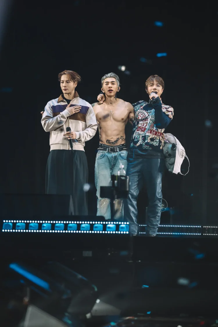 Tyson Yoshi (中)澳門演唱會大秀肌肉、王嘉爾(左)張敬軒(右)三人罕見同台 照片提供:Just Kidding Limited