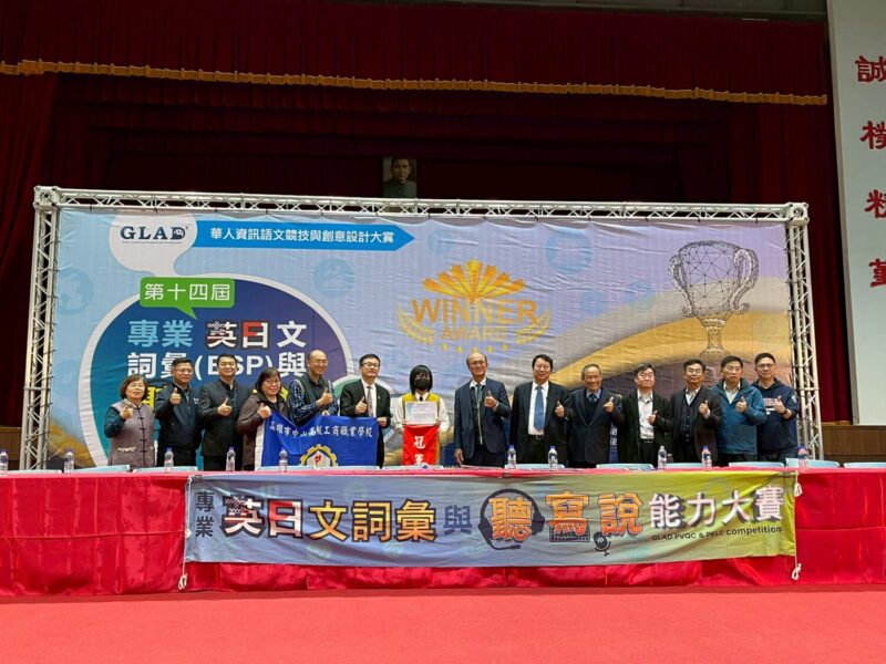 第十四屆專業英日文(ESP)詞彙與聽寫說能力全國總決賽 中山工商稱霸 19名選手全數獲獎,勇奪7 冠軍、6 亞軍、3季軍及金腦獎 再創佳績