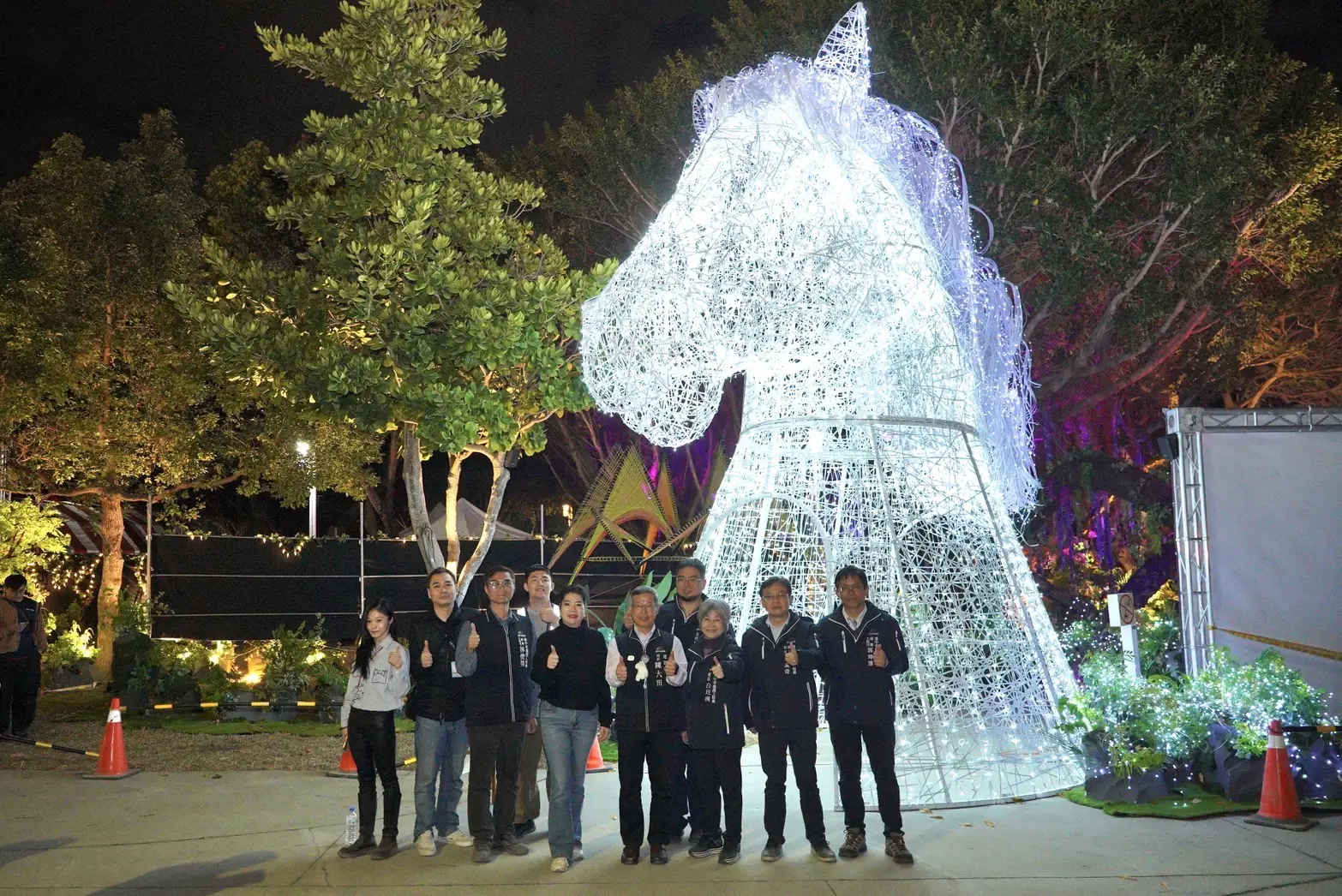 建設局說明,「驚蟄界」由曾打造高人氣燈區「龍之異次元」的策展團隊再度操刀,以「春雷喚醒大地、萬物重新萌生」為核心概念,融合工藝、花藝、多媒材裝置與聲光特效,形塑具高度沉浸感的雨林式場景;並呼應馬年意象,注入動感與能量,讓民眾在行走燈區時,彷彿親身感受春天甦醒的節奏。
