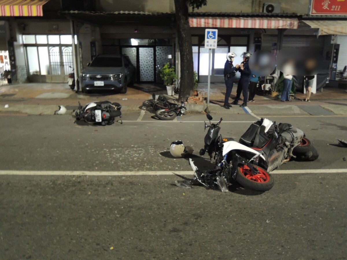 警方指出,楠梓警分局於昨(30)日22時許獲報,在楠梓區興楠路上發生交通事故,一名10歲男童操作不慎令滑板自騎樓滑入車道,行駛於興楠路的28歲陳姓女騎士為閃避而急煞,導致後方機車騎士23歲林男、24歲江男追撞並波及路旁停放機車,119在場檢傷時,24歲吳男及32歲莊女閃避不及發生碰撞。林男、江男及吳男受傷經送醫無大礙,駕駛經檢測皆無酒精反應,詳細肇事原因仍需調查後送交通大隊分析研判。