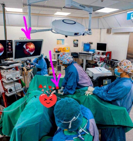 蔡秀男主任補充說明,這次手術醫療團隊運用先進的「二極體雷射(波長1470nm)手術系統」,藉由其優異的汽化與組織止血特性,精準針對出血點進行凝固,並同步將攝護腺組織切除與刨除。相較傳統電刀手術,雷射手術能有效減少術中出血量,縮短手術與麻醉時間,對於高齡或患有心血管疾病的患者而言,安全性相對提升,降低併發症風險,亦有助於縮短病患住院天數。