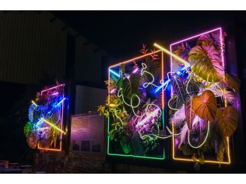 遺構公園燈區則設置「花仙子的衣裳」、「火樹螢花」、「鏡花奇緣」等燈組,巧妙運用斷垣殘壁的空間特色,與花藝光影相互輝映,每一處轉角都充滿驚喜,吸引不少遊客與網友盛讚為「美拍聖地」。