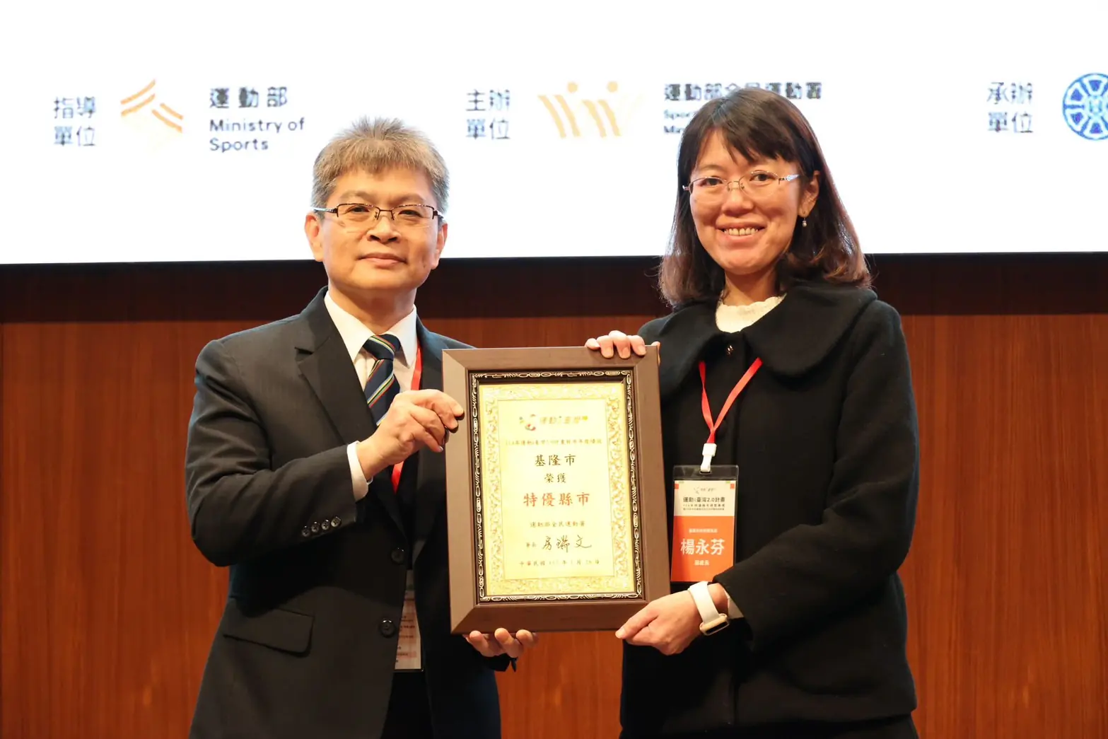 基隆市政府持續推動全民運動,榮獲運動部全民運動署「114年運動i臺灣2.0計畫」特優縣市殊榮,日前在運動部舉辦的「114年運動i臺灣2.0計畫特優縣市頒獎典禮」上,由房瑞文署長親自頒發獎項,給予基隆市政府團隊最高肯定。