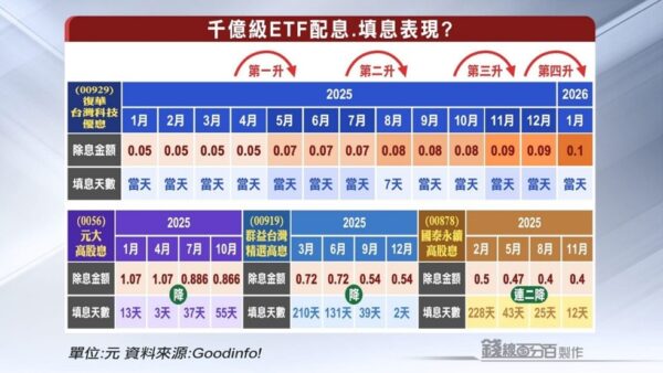 進一步觀察五大高股息ETF配息與填息表現,馮志源指出,00929去年四次調升配息金額,為調升次數最多的高股息ETF,反觀0056、00878與00919則皆曾出現調降。填息速度方面,00929去年12次除息中有11次於當天填息,僅一次歷時7天,整體效率穩居五大高股息ETF之首。這種高配息、高成長且高填息效率的「三高」表現,讓00929在這波多頭行情中展現出極佳的投資效益。