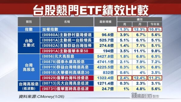 台股上演「瘋馬行情」,帶動ETF普遍走揚,除了市值型與半導體ETF表現亮眼外,高股息族群中,復華台灣科技優息(00929)同樣吸睛,今年以來漲幅逾11%,成為五大高股息ETF中唯一跑贏大盤者。財經專家分析,關鍵在於指數優化後,同步兼顧成長動能與配息優勢,使其在多頭格局中脫穎而出。