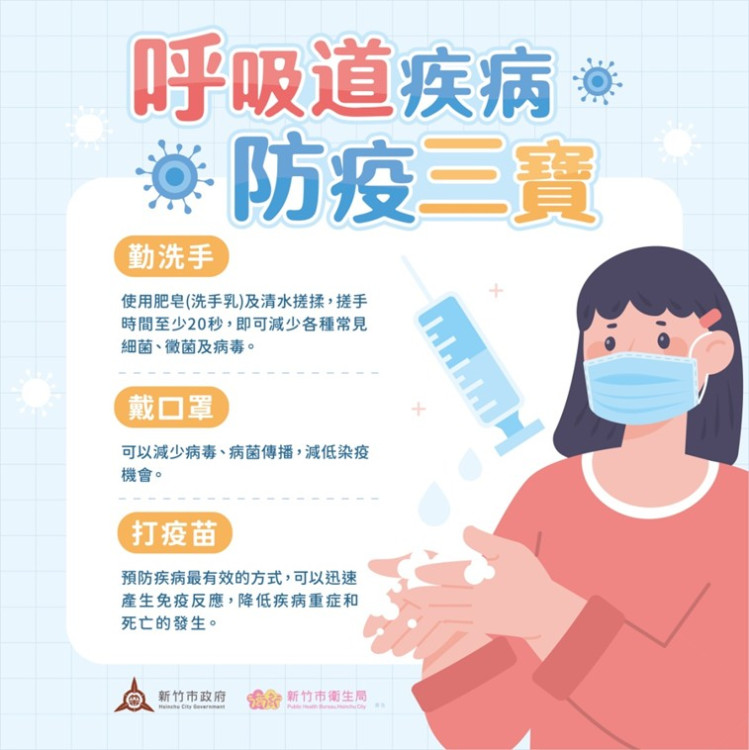 農曆年春節將至,民眾國內外旅遊及往來頻繁,加上近期氣溫變化大,恐加速病毒傳播。新竹市政府特別呼籲市民,在歡慶年節南來北往、走春拜年之際,務必落實「勤洗手、戴口罩、打疫苗」,以防疫三寶構築最完整的防護網,並建立「生病宜在家休息」的正確觀念,才能守護家人及親友健康,享受安心愉快的春節假期。