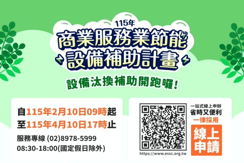 【焦點時報/記者羅蔚舟報導】經濟部115年商業服務業節能設備汰換補助將於115年2月10日開放線上申請,有需求的企業屆時可至補助網站( https://www.essc.org.tw )提出申請。今年度補助受理至115年4月10日止,經費用罄將提前截止,請企業及早準備相關資料提出申請,以免向隅。