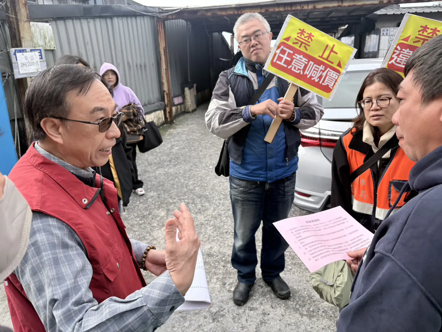 春節即將到來,為防止春節假期間業者趁機哄抬價格、保障遊客權益,新北市交通局副局長曾招雄今(9)日率同瑞芳區公所及瑞芳警分局,聯合加強稽查九份地區民營停車場及計程車招呼站,針對停車場經營情形、停車費率標示、是否開立收據,以及違規攬客與計程車是否依春節計費標準收費等項目進行蒐證與取締,一經查獲違規,將立即依法開罰,杜絕不法行為。