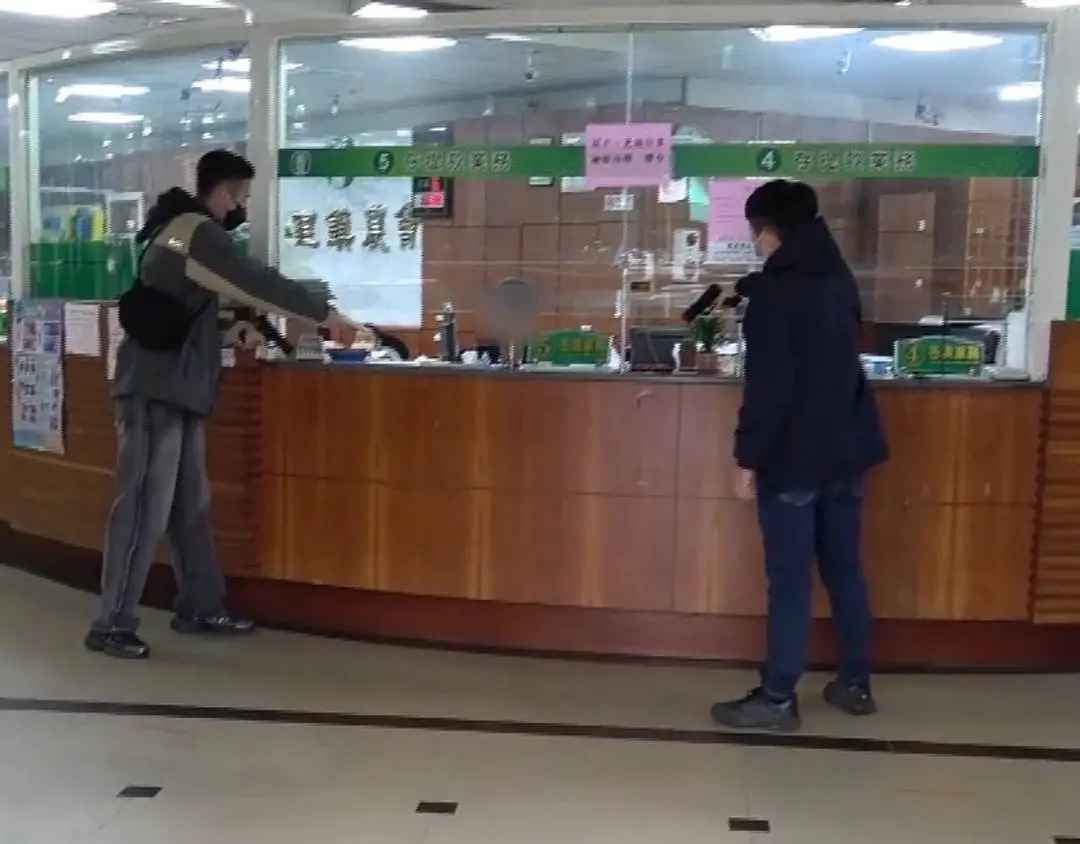 本次演練模擬兩名持槍鴛鴦大盜,於營業時間闖入農會行搶。 歹徒先佯裝辦理提款,隨即掏槍對空鳴槍大喊「搶劫!」, 並威逼行員交出現金。現場行員臨危不亂,一方面冷靜配合、 緩慢取款以拖延時間,另一方面則機警啟動隱藏式警鈴通報警方。