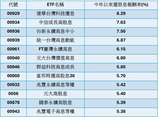科技股持續領軍,台股多頭氣勢不墜,高股息ETF同步受惠。其中,復華台灣科技優息(00929)在指數優化後,績效明顯領先,今年以來(截至2月4日)還原息報酬率達8.29%,居高股息ETF之冠;中信成長高股息(00934)與台新永續高息中小(00936)分別以7.63%與7.50%位居第二、第三名,表現同樣亮眼。