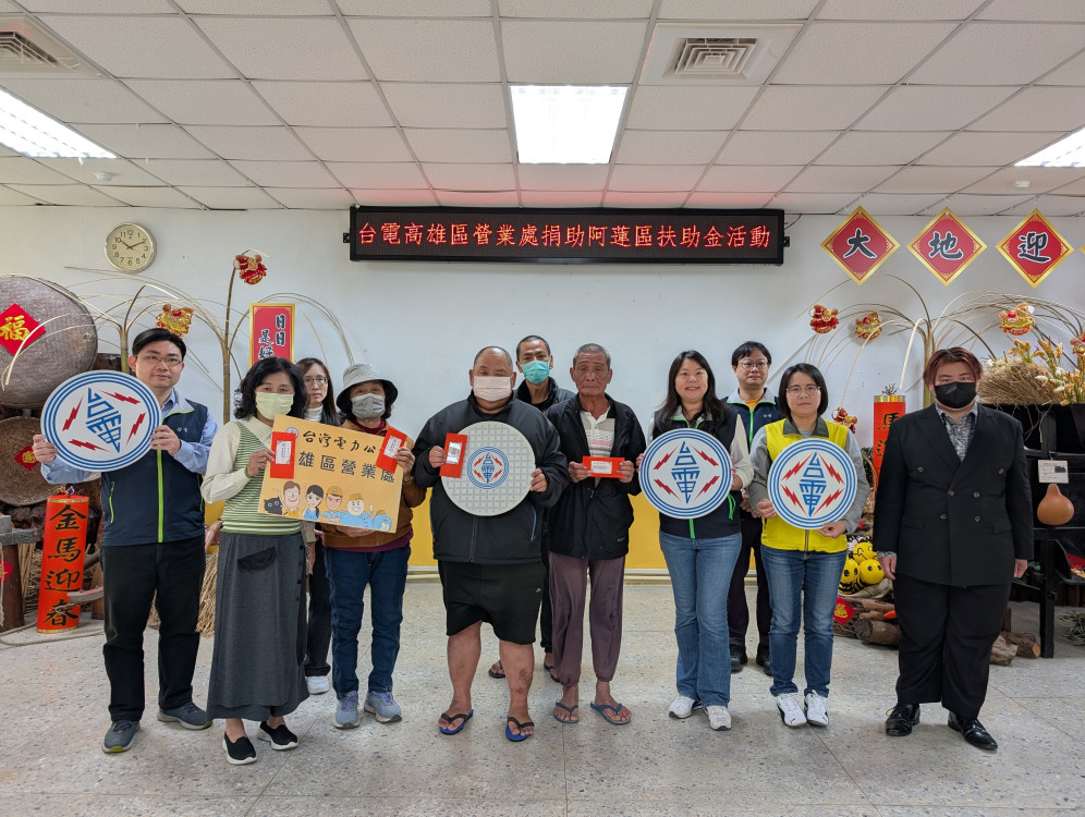 【大成報記者張淑慧/高雄報導】農曆年節前夕,台灣電力公司高雄區處在阿蓮區公所協助安排下,由業務副處長許佳玉於2月10日率隊前往關懷阿蓮區9位因病生活陷入困頓的長輩,捐助生活扶助金,為長輩們送上最即時、最溫暖的支持與陪伴。阿蓮區公所社會課表示,以往民間慈善團體多以物資捐助為主,台電此次捐助的生活扶助金對長輩來說,就像年節紅包,特別有濃濃過年氣氛。