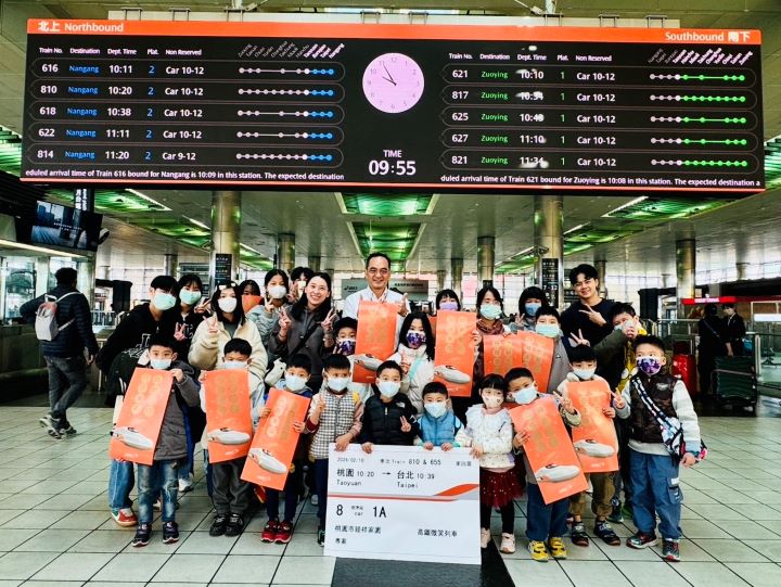 【News586/記者彭慧婉報導】高鐵桃園站關懷弱勢孩童,今(10)日協助桃園「睦祥家園」育幼院的院生們,在寒假期間快樂出遊。出發前,高鐵桃園站劉和鎮站長在年節前夕特別也送上高鐵公司印製的N700ST新車春聯,期盼孩子們能在高鐵的愛心支持下,穩健前行,迎向未來。