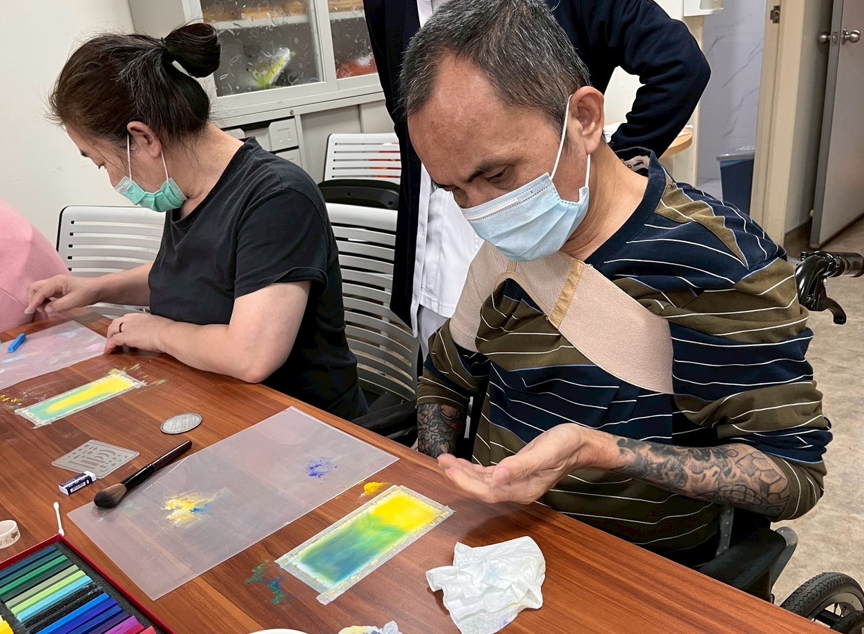 活動現場氣氛專注而溫馨,每位照顧者都沉浸在粉彩繪畫的過程中,透過手指暈染與色彩堆疊,慢慢完成屬於自己的作品。不少參與者分享,雖然一開始表示自己不會畫畫,但最後對於完成的作品相當滿意,並開心地說:「沒想到我也可以畫出這麼好看的作品」,從中獲得自我肯定與情緒釋放。