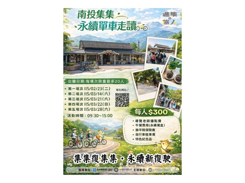 南投縣政府與南投縣集集鎮形象商圈觀光發展協會攜手合作,自2月14日至3月30日推動「集集復集集・永續新復駛」系列活動,為集集線鐵路復駛注入嶄新活力。該活動提供民眾搭乘集集線鐵道到集集遊玩的優質選擇,透過「減碳集一點」LINE官方數位帳號集點方案,民眾可兌換限量永續伴手禮紀念杯袋,報名「永續單車走讀活動」,更能深度體驗雙鐵軌跡與綠蔭交織的獨特魅力。