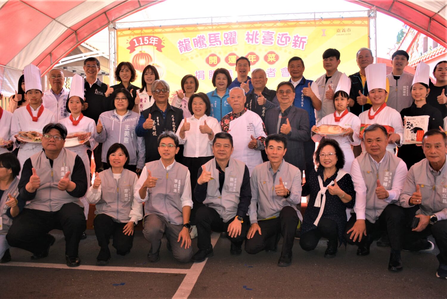 今日開運年菜捐贈及發送活動中,由崇仁醫護管理專科學校餐飲管理科的學生表演年菜上菜秀,展示市府精心準備的美味佳餚年菜,學生拿起廚具架勢十足,搏得滿堂喝采;會後,黃敏惠市長率市府同仁,與蔡爾健董事長一起出發前往送年菜給於114年7月15日在嘉義縣進行風災搶修電力時遭電擊因公殉職者之家屬家中,帶來各界的溫暖與祝福,以撫慰家屬失去親人的痛。