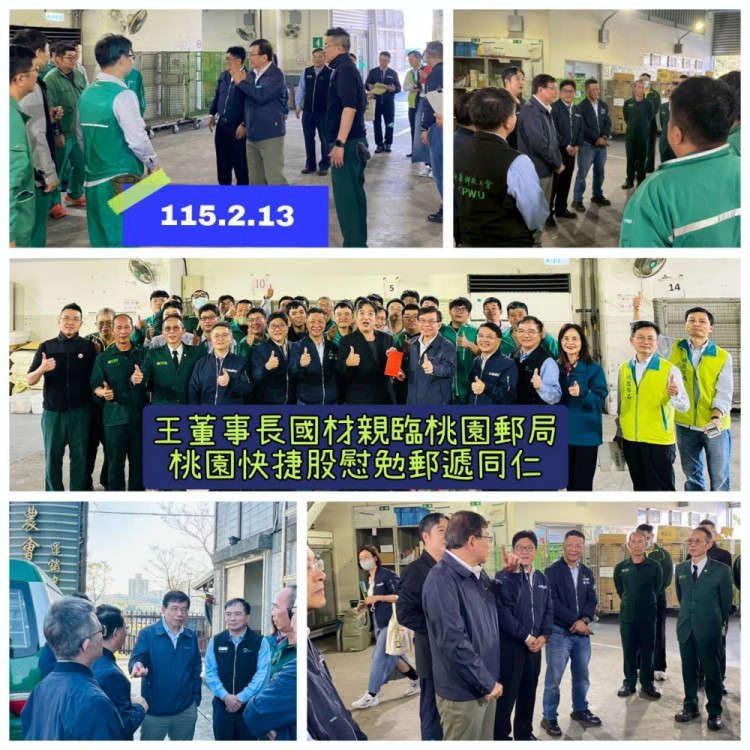 農曆春節將至,中華郵政公司董事長王國材特於今(2/13)日下午親赴桃園快捷股慰問第一線同仁,向堅守崗位之夥伴表達關懷與感謝,現場氣氛溫馨熱絡。