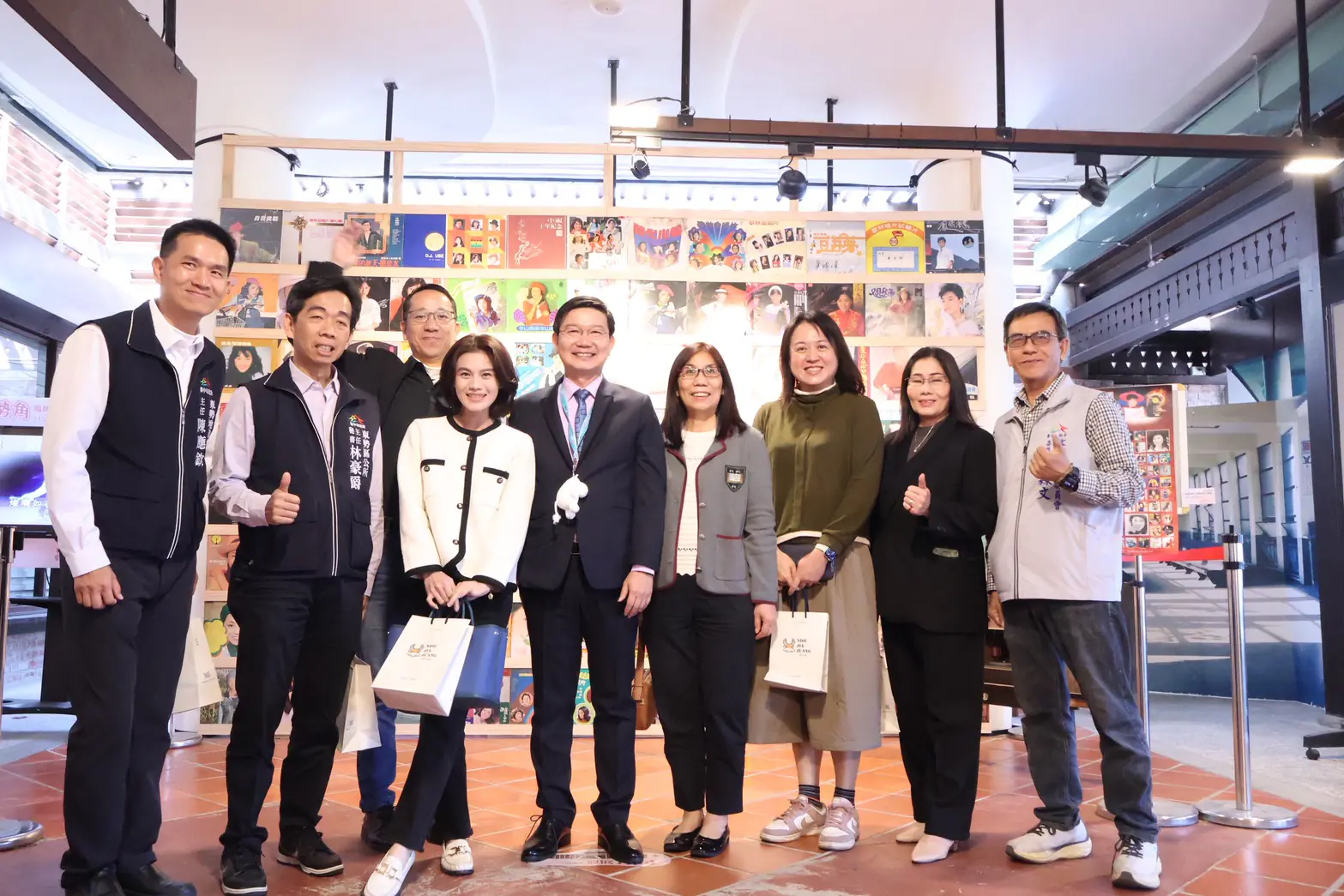 江主委補充,展場規劃內容豐富,除透過影音設備呈現鳳飛飛珍貴影音資料外,現場更設置由117張鳳飛飛黑膠唱片組成展示牆,成為展覽亮點之一,吸引民眾駐足欣賞與拍照留念,重溫經典旋律,緬懷一代歌后的藝術風采。