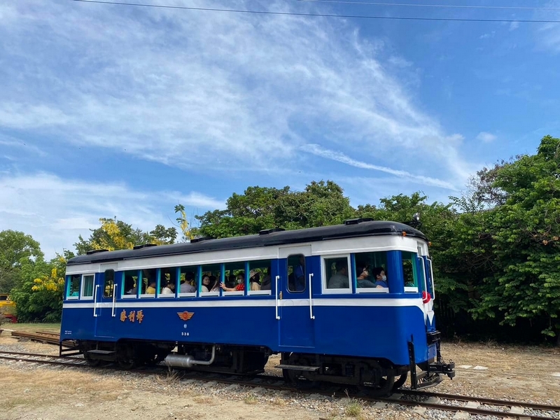 圖/新營園區的藍白色五分車「勝利號」,行經急水溪橋,沿途可飽覽城市到田野的風光