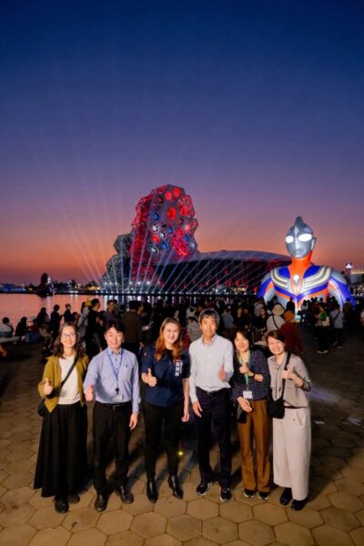 除觀賞15米初代超人水上裝置因愛河灣風勢而自然擺動的「魔性小手手」,分享台日兩國均有粉絲遊客自備白色湯匙演出超人的趣味現象與網路迷因;現場也同步展示觀光局最新開發之《高雄 GO!》官方觀光APP的多國語言AI導覽旅遊諮詢功能,以及與觀光大使「高雄熊」進行AR合照等數位互動。植原康浩副市長也體驗直接以日語詢問「愛河周邊美食」,在AI語音辨識後迅速呈現日語旅遊資訊,大讚高雄「超強!超厲害!」,表示高雄不僅具備山海河港的絕佳魅力,智慧觀光、科技旅遊的應用令人驚艷,更對國際觀光發展和外國遊客帶來極高的便利性與旅遊體驗。
