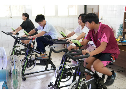 閒置廚房改造的創客教室,學生們奮力踩著人力發電腳踏車,產生的電流供給前方放置的電風扇,享受涼風外,還能體驗運動發電的樂趣。校長林廣文表示,泰安國小針對不同年級打造能源教育課程,也培訓中高年級的孩子擔任解說員,為參訪來賓講解校內各項節能措施,深化學生對節能、創能、儲能的認識,進而將節能減碳的理念帶回家中並擴散至社區。