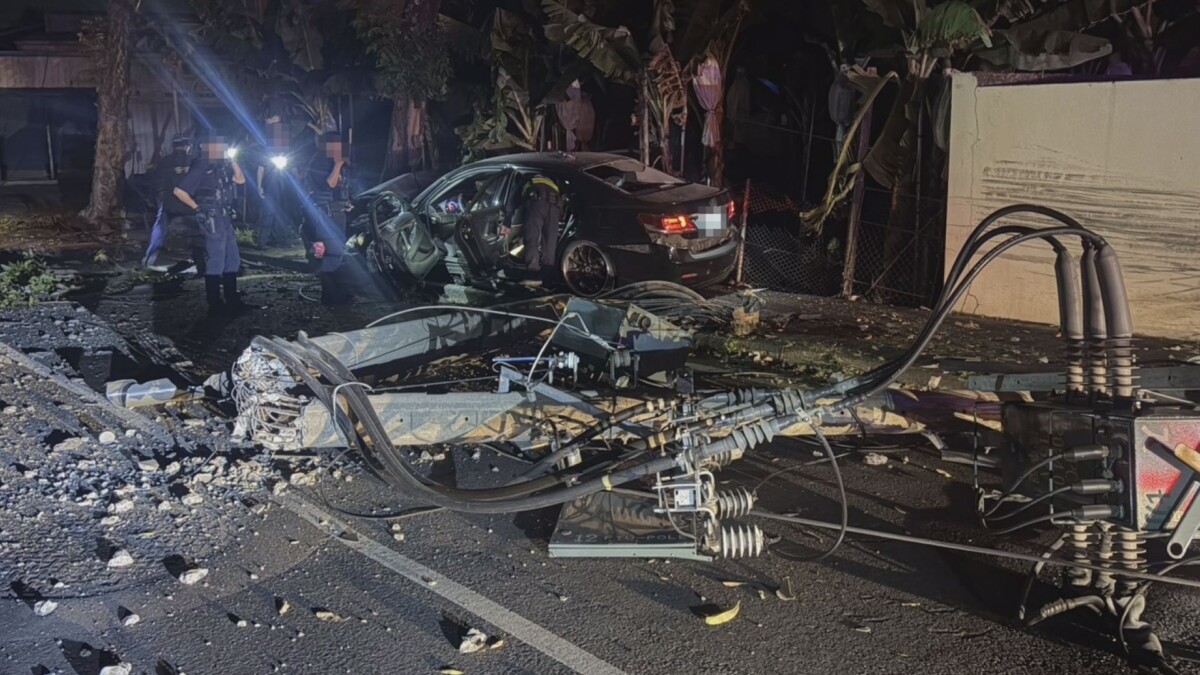毒駕拒檢撞警車逃逸 大寮自撞電桿釀停電