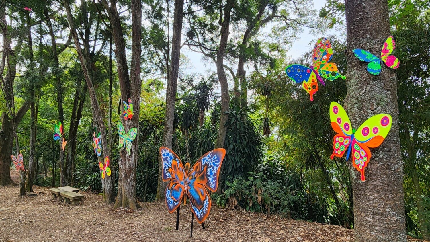 本屆主燈及各大主題燈區也正式亮相,主燈「眾心之聚」設於中心碑三角點,以竹構結合紅色光影環繞「台灣之心」,在夜晚成為最醒目的存在,象徵鎮民凝聚的力量與熱情,歡迎來自各地的民眾到埔里賞燈旅遊,還有4個由埔里在地藝術家帶領社區及孩子共同創作燈區,大量運用森林的元素,包括樹木、土壤等天然元素,並啟用紫光系統及環保素材,活動結束後還給森林乾淨的面貌李翌綸老師的「折光・中心」以「地理中心」為靈感,透過透明球體與光線折射,呈現白天與夜晚截然不同的光影樣貌;「下雨的雲與開出的花」是擅長陶藝創作的黃筠筑老師,以雲與花為意象,將燈光化作落在土地上的雨水,描繪生命在滋養中慢慢生長的畫面;廖珮如老師的「蝶映埔里」以埔里引以為傲的蝴蝶生態為主題,結合在地生態特色、社區與孩子的創意,邀請大家看見家鄉的自然樣貌;而由黑炭、眉毛老師帶領創作的「夜獸」,則以夜晚森林裡的小小生命,陪伴民眾走進夜色之中。