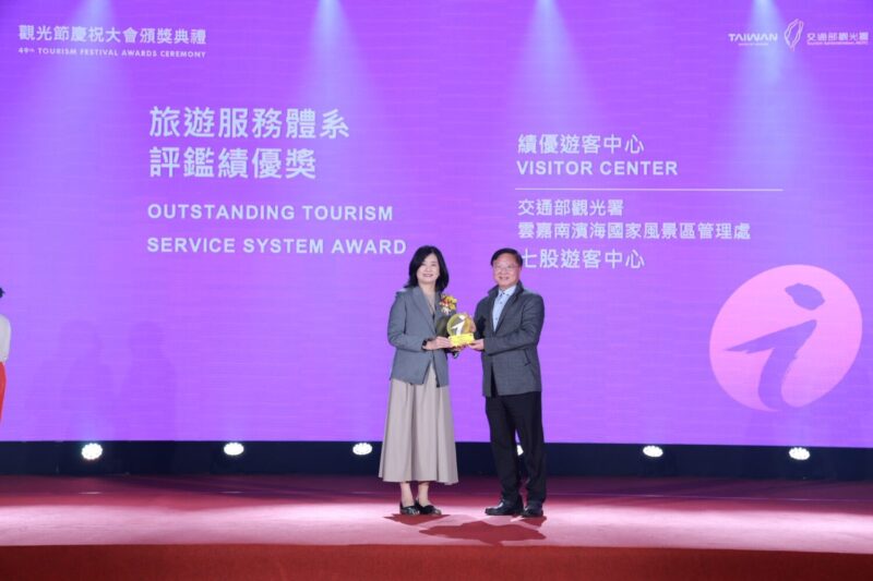 除了個人殊榮,雲嘉南管理處轄下的「七股遊客中心」亦在旅遊服務體系評鑑中表現優異,榮獲績優獎。七股遊客中心以其獨特的幾何建築造型成為熱門打卡聖地,內部更透過完善的資訊提供、導覽及友善的諮詢服務,獲得評審高度評價。這項榮譽肯定了雲嘉南管理處在優化旅遊環境、提升遊客滿意度上的不懈努力。