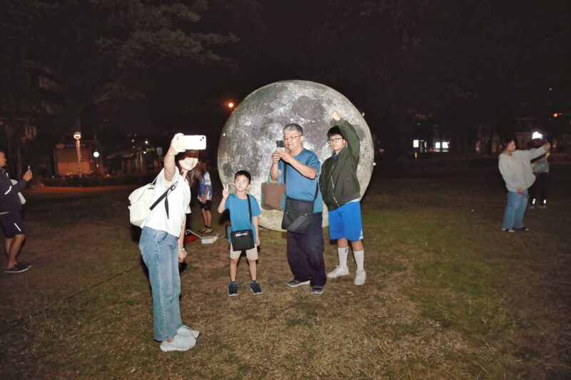 昨日天氣變化莫測,正當各地天文迷為陰雨惋惜之際,屏東縣政府攜手屏東縣天文協會,於屏東市、高樹鄉、琉球鄉、車城鄉及恆春鎮等五處同步部署觀測團隊,發揮分區備援優勢。雖屏北地區一度雲層厚重,位於恆春半島的車城國小操場觀測點成功「撥雲見月」,自初虧、食既、食甚、生光至復圓,全程清晰記錄月全食變化。現場透過高畫質天文設備與即時串流技術,將紅月影像同步傳送至屏東市幸福公園主會場,以及高樹、小琉球及恆春東城門現場大螢幕,數千名民眾同步見證天文奇景。紅月高掛夜空時,現場驚呼聲此起彼落,民眾直呼:「幸好有五地連線,屏東真的太強了!」