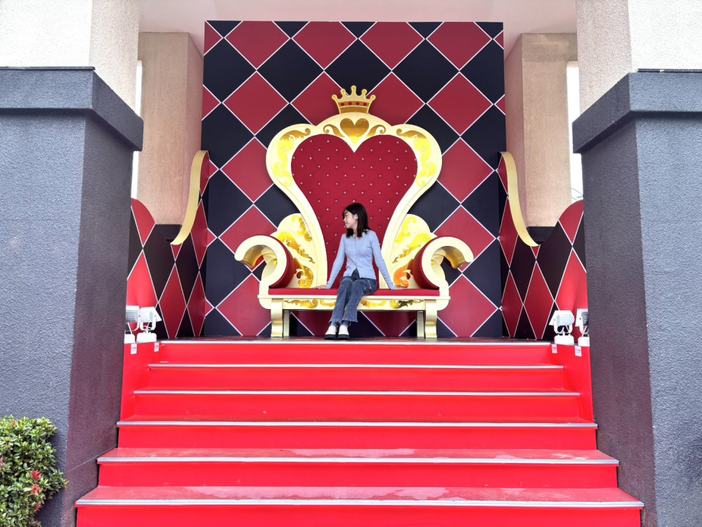 棋鏡花園:皇后的加冕宴:於戶外購物街區花圃以紅毯鋪陳場景,兩側「微光幻花」會隨遊客步伐感應亮起並綻放,照亮通往皇后寶座的路徑,如同走入童話中的加冕盛宴,步步皆是儀式感十足的夢幻畫面,也成為親子拍照打卡的首站焦點。
