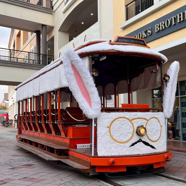 時空引航號:穿梭商場與樂園間的叮叮電車首次以兔裝登場,化身「時空引航號」,載著遊客在童話秘境之間緩緩前行,讓移動的每一刻都沉浸於奇幻世界。