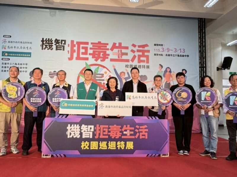 【News586/記者張淑慧報導】高雄市政府毒品防制局攜手高雄市政府教育局、中國信託反毒教育基金會,3月9日於六龜高級中學舉辦「機智拒毒生活-校園巡迴特展」啟動儀式。活動由六龜國小太鼓隊開場,並結合六龜區公所「2026山城奇幻生物祭」角色元素,透過在地意象提升宣導親和力,展現公私協力把反毒資源帶進偏鄉山城的行動力。