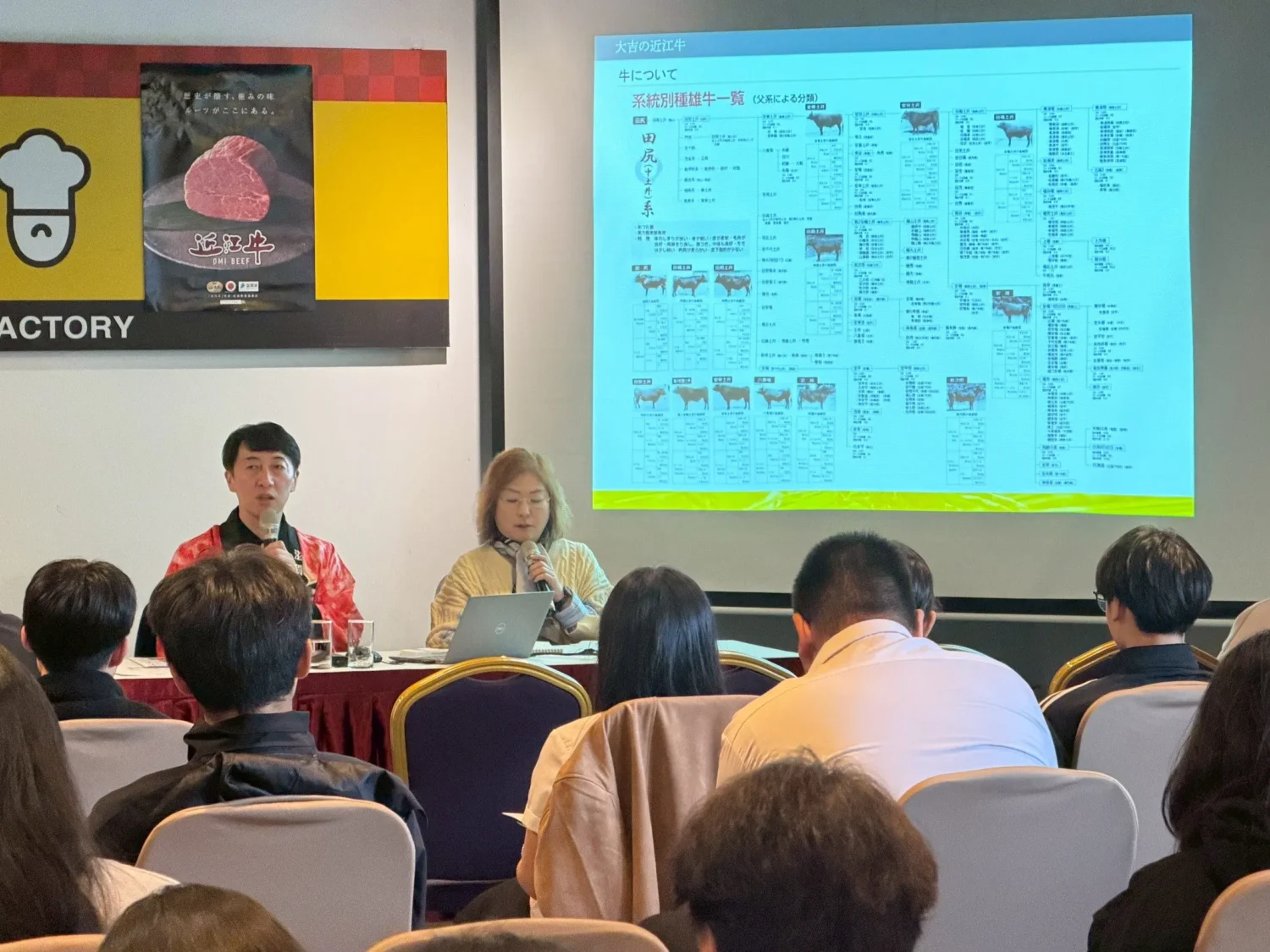讓職人引以為傲的頂級近江牛來自滋賀縣,受日本第一大淡水湖「琵琶湖」純淨水源滋養,以濃郁香氣與極佳口感與松阪牛、神戶牛齊名「日本三大和牛」。創立於1896年、走過130年歷史的大吉商店,始終以開放性思維推廣這個源自地方風土的頂級食材。永谷社長分享,品牌堅持嚴選肉質細緻、脂肪融點低的「母牛」,其在低溫下輕柔化開的甘甜油脂與濃郁旨味,正是近江牛最迷人的魅力,也是他期盼臺灣學子能以五感親自體會的優雅風味。