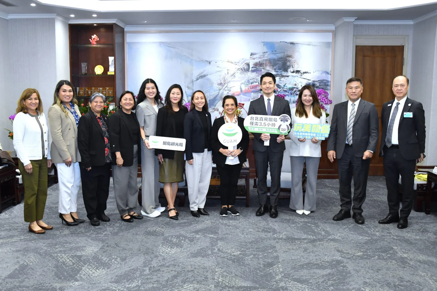 蔣萬安指出,關島長年熱情參與臺北市重要城市活動,例如臺北燈節。關島觀光局已連續6年於燈節設置富有當地文化特色的主題燈飾,讓臺北市民透過燈會認識關島文化與魅力,臺北市對此深表感謝。蔣市長也提到,關島擁有壯麗的海洋景觀及悠久的查莫洛文化;去年4月臺北與關島開通直飛航班,飛行時間不到4小時,往來更加便利,也期待有更多關島好朋友來訪臺北,未來在觀光推廣、文化交流及產業發展等方面持續深化合作。