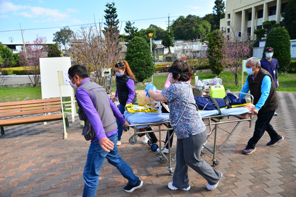 此外,現場同步模擬戰時傷兵收容作業,將後方支援與醫療救護緊密結合,強化家區在戰時轉換為醫療救護能量能力,確保資源能在最短時間內發揮最大效用。