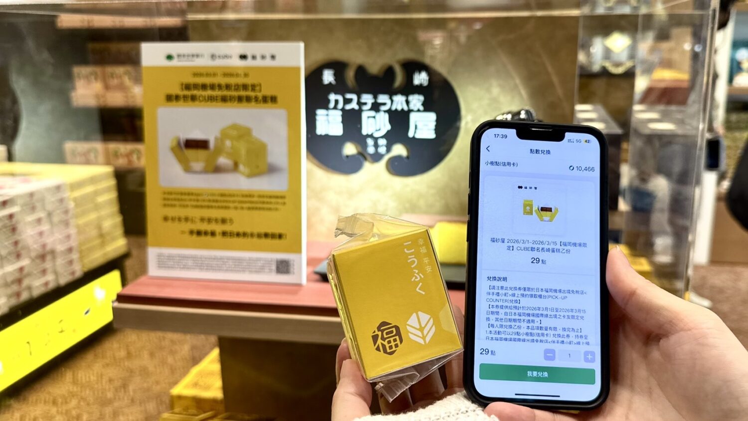CUBE x福砂屋聯名蛋糕來囉!29小樹點換券 福岡機場免稅店兌換