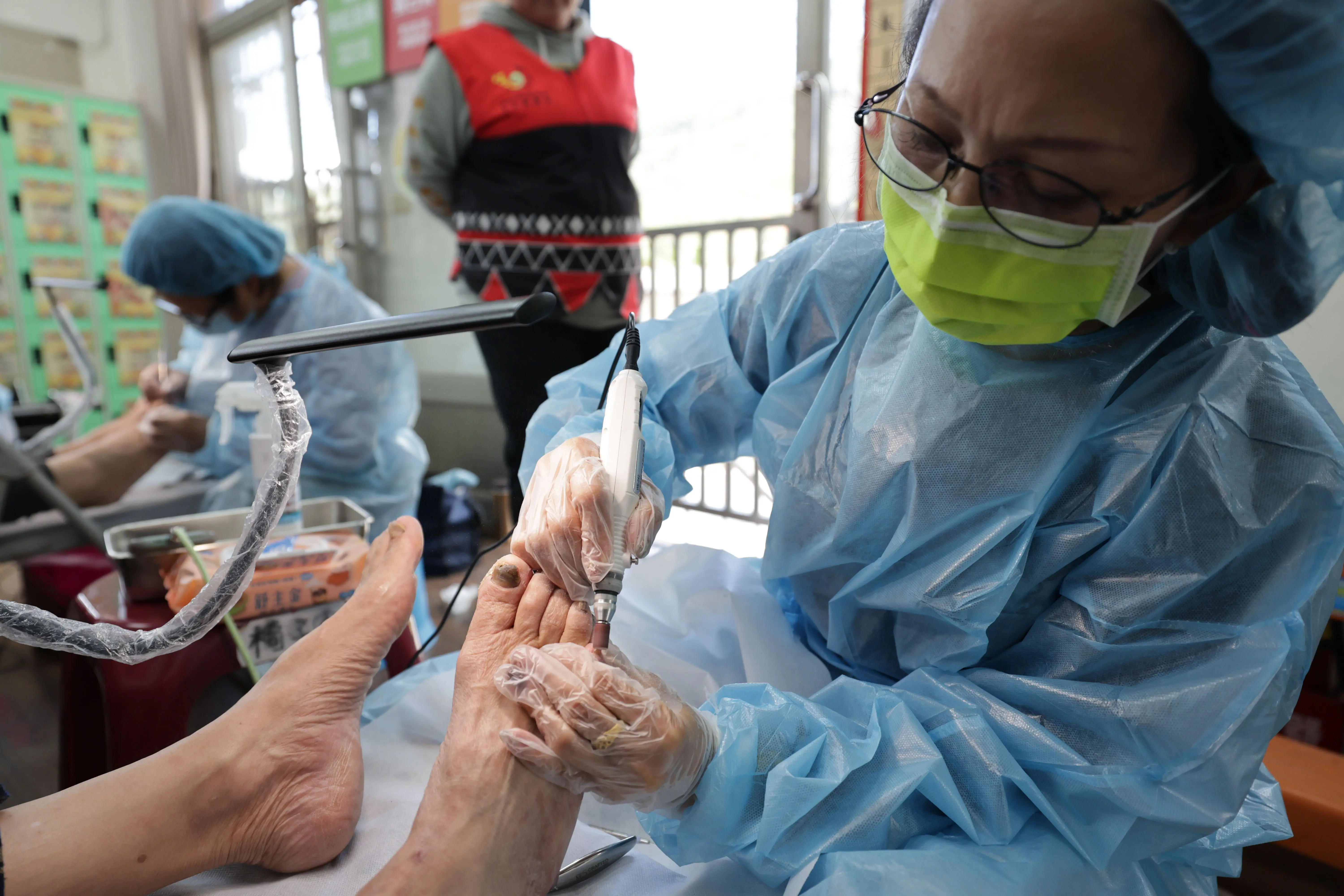 執行長劉銀冰表示,剪趾不只為了美觀,也是保健關鍵,許多長輩有糖尿病或血液循環問題,小傷口恐形成潰瘍,志工介入修剪可避免出現潰瘍。