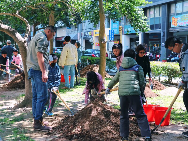 活動現場由科博館、國際扶輪3462地區1-3分區各社社員與國小學童手持圓鍬及移植鏝參與實作,為臺灣原生植物苗木添加有機資材,透過親手進行棲地維護與土壤改良,將課堂上的生態知識轉化為具體的栽植培育經驗,進而理解都市林長期維護的必要性。
