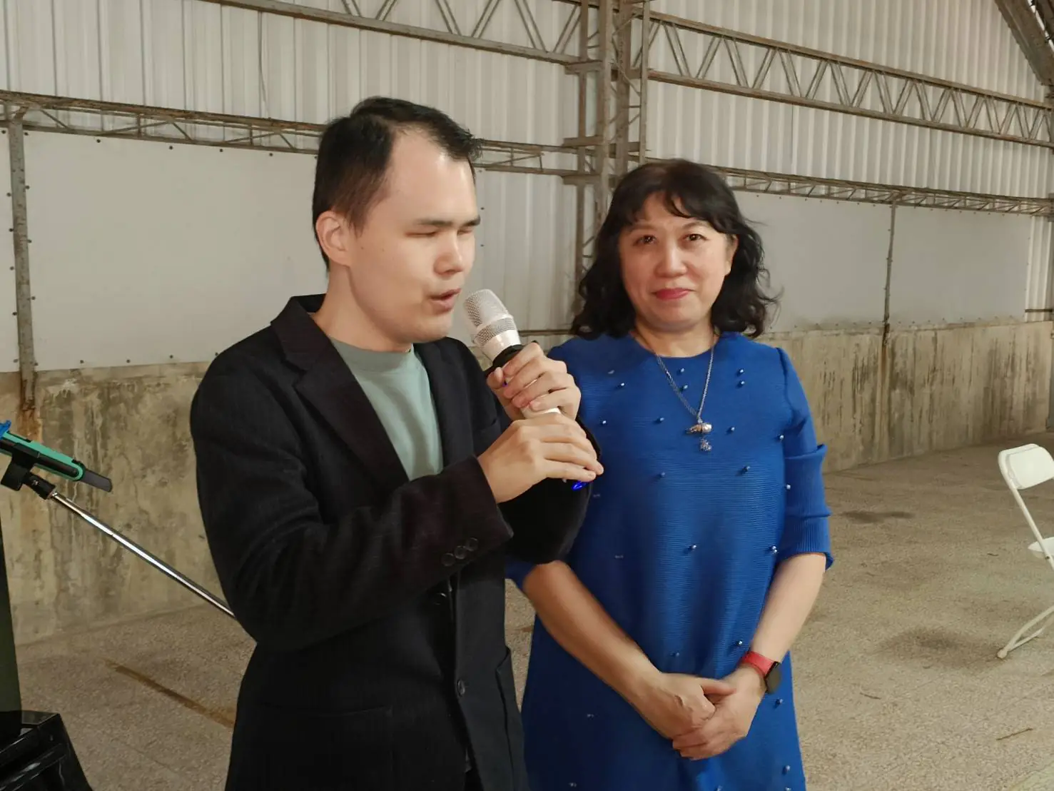 音樂輔療講師劉貞宜於14日下午在安平工業區的樂豐工業工廠頂樓辦理樂齡師生陶笛、豎琴與空靈鼓成果展,並邀請國際知名視障鋼琴家許哲誠至現場獨奏1小時,並與參與學員合奏3首曲目。