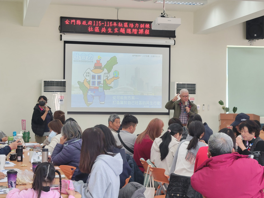 【大成報記者陳金/金門報導】金門縣政府社會處於3月14日在金寧鄉榜林社區活動中心舉辦「社區共生主題進階課程」,圓滿達成預期目標;本次課程匯聚各鄉鎮公所社會課長、承辦人及社區發展協會幹部,透過實務對話與案例激盪,展現出金門基層社區對於議題發掘、行動設計及永續治理高度使命感。