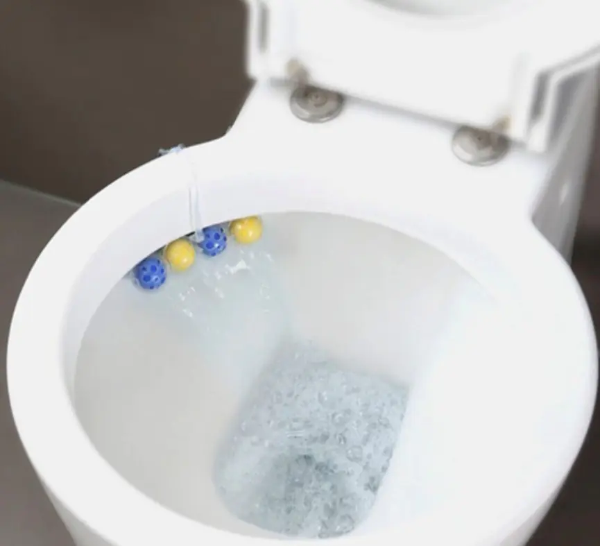 懸掛式馬桶清潔球只需掛在馬桶邊緣即可使用,安裝過程不需將手伸入馬桶內部。圓球外型也能貼近馬桶內側,沖水時讓水流較順暢地通過,將清潔泡沫帶出並隨水流流動。