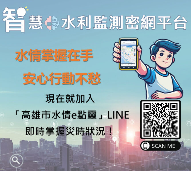 高雄市政府強調,智慧城市的核心在於運用科技提升治理效能與市民安全。透過智慧水利監測密網的建置與持續精進,高雄正逐步打造更安全、更具韌性的智慧城市。同時水利局也歡迎市民朋友加入「高雄市水情e點靈」LINE官方帳號,即時掌握降雨、水位及積淹水等水情資訊,在豪雨或颱風期間第一時間接收防災提醒與災情通報,共同提升城市整體防災應變能力。