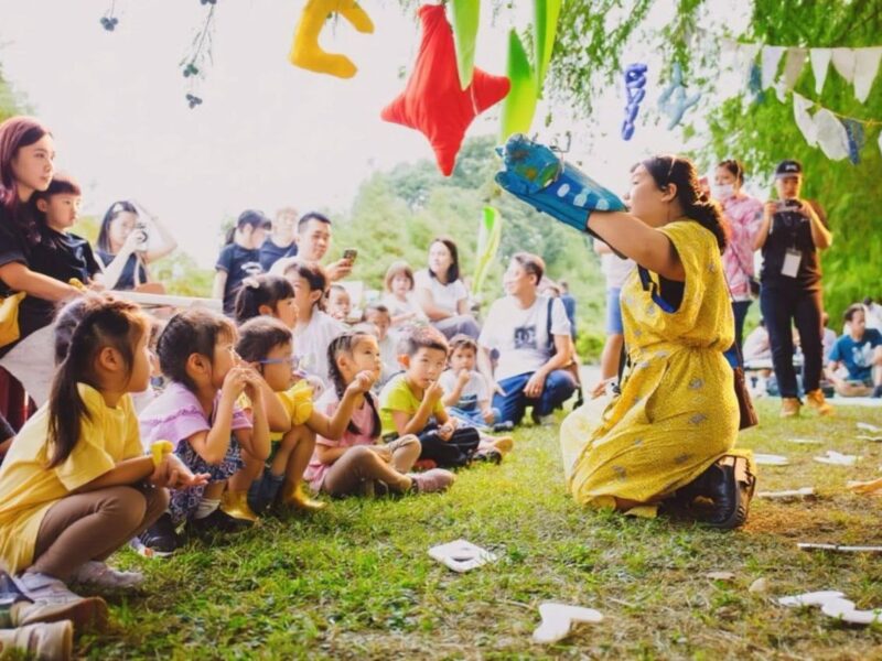 兒藝基地也與隆中向上教育基金會合作,在互動體驗空間推出「 SOGA STOP!」插畫展與永續主題繪本閱讀, 透過圖像與故事引導孩子認識生活中的永續行動, 完成任務學習單還可獲得小禮物。