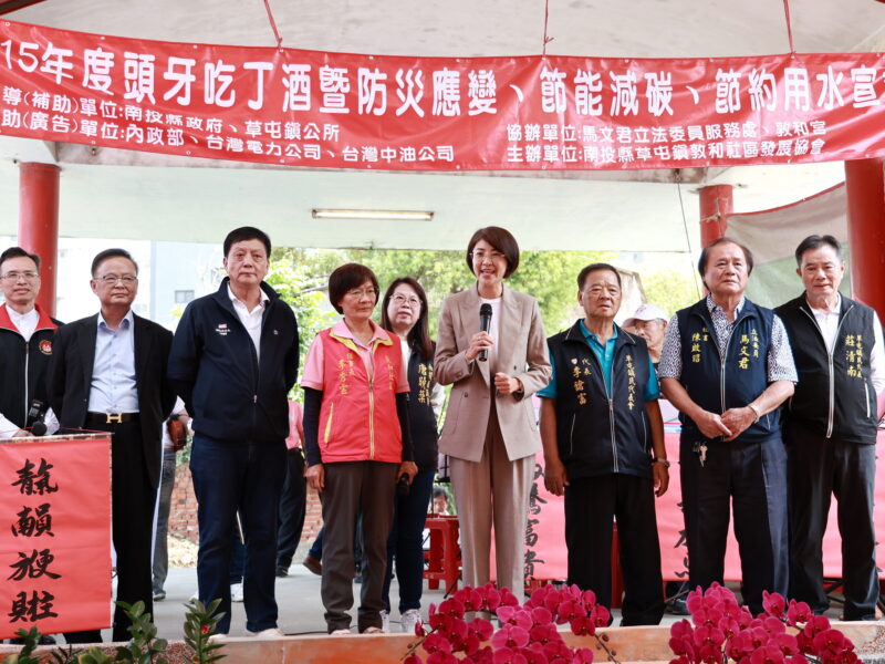 適逢農曆2月初2土地公生,南投縣草屯鎮崎仔頭福德廟廟埕於3月20日熱鬧非凡,由敦和社區發展協會主辦的115年度頭牙吃丁酒盛會如期展開。活動開場由社區大鼓隊、舞獅隊及國樂團接力演出,展現社區充沛的活力與向心力。南投縣長許淑華在草屯鎮長簡賜勝、縣議員李洲忠及地方代表陪同下到場致意,為地方祈求福祉。