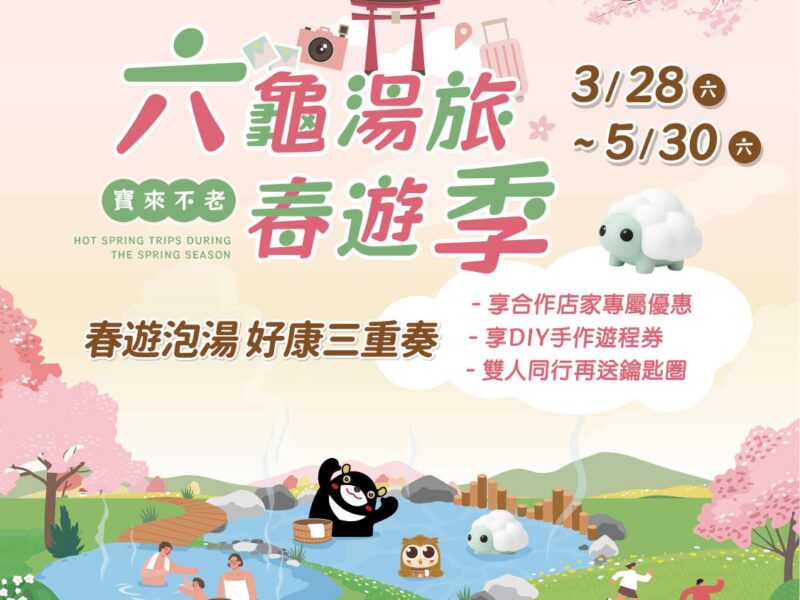 「六龜觀光休閒協會」理事長黃瓘博說明,六龜寶來及不老溫泉區為南台灣重要溫泉據點,泉質屬弱鹼性碳酸氫鈉泉,素有「美人湯」美譽,並曾榮獲「台灣好湯-金泉獎」最佳CP值肯定。本次活動推出泡湯好康三重奏,不僅串聯在地溫泉業者推出優惠方案,旅客預約泡湯可享手洗野生愛玉、植物槌染環抱袋、手繪山茶茶包、窯烤披薩等DIY體驗,雙人同行再送貓頭鷹鑰匙圈等好康。