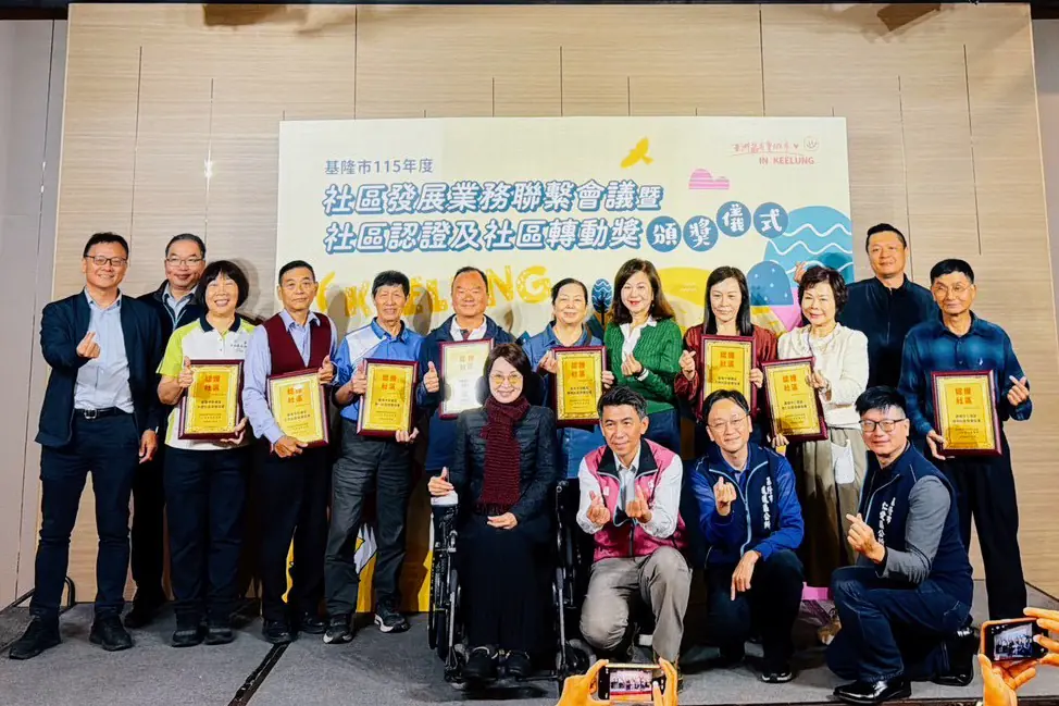 基隆市政府昨(25)日舉辦「115年社區發展業務聯繫會議暨社區認證及社區轉動獎頒獎儀式」,邀集全市各區社區發展協會代表齊聚一堂,進行業務交流與經驗分享,並公開表揚長期深耕地方、投入社區服務的優秀團體與個人,現場氣氛溫馨熱絡。