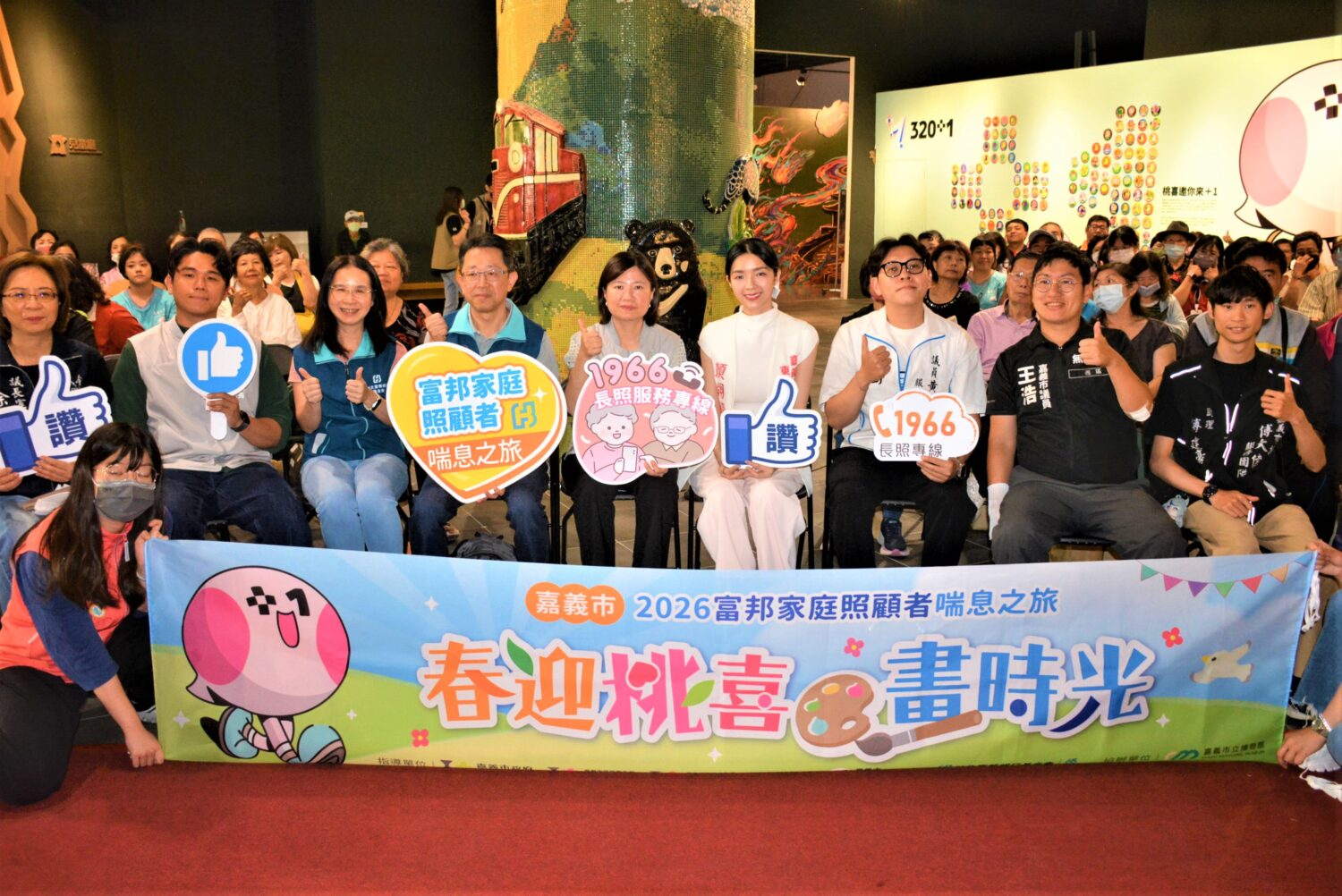 〔News586/記者郭政隆嘉義市報導〕長照是條漫長的路,嘉義市政府為減輕家庭照顧者負擔,3/31日攜手台北富邦銀行公益慈善基金會,在嘉義市立博物館辦理「嘉義市2026富邦照顧者喘息之旅」,邀請家庭照顧者與被照顧者走出日常照顧場域,在文化與藝術氛圍中放鬆身心;今年活動特別結合嘉義市城市博覽會IP「桃喜」彩繪創作,透過手作體驗讓照顧者在創作中紓壓,期能舒緩家庭照顧者疲勞,本次活動共有60位家庭照顧者參與,不少人更帶著被照顧者,甚至全家一同出席。