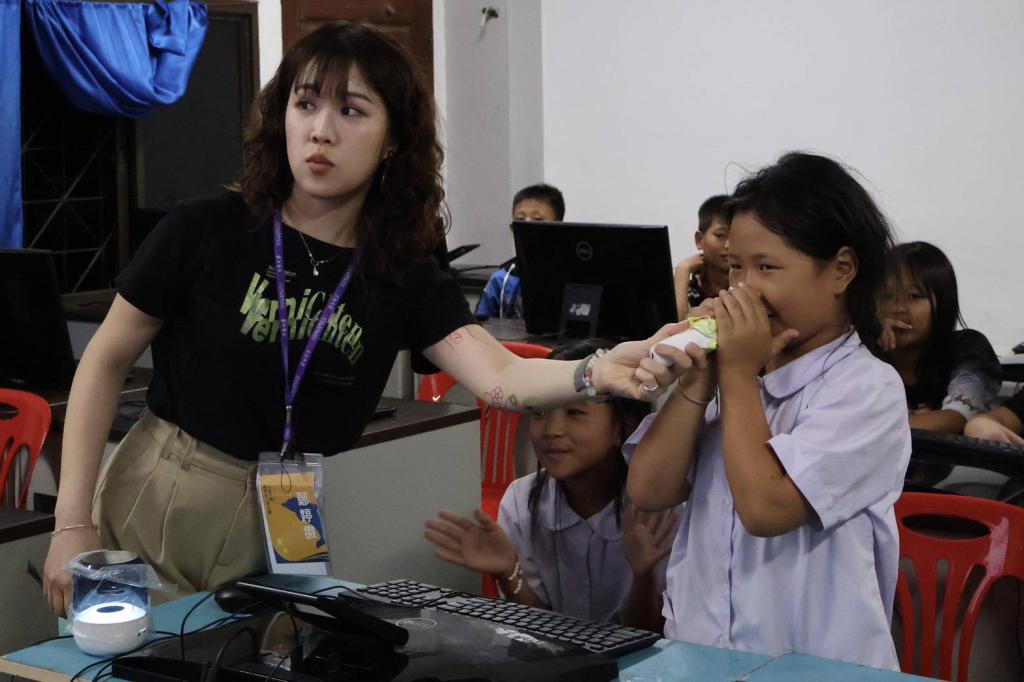 圖說:賴芊樺同學赴馬來西亞帶領當地學童進行生活課程學習 。( 圖/青年局提供)