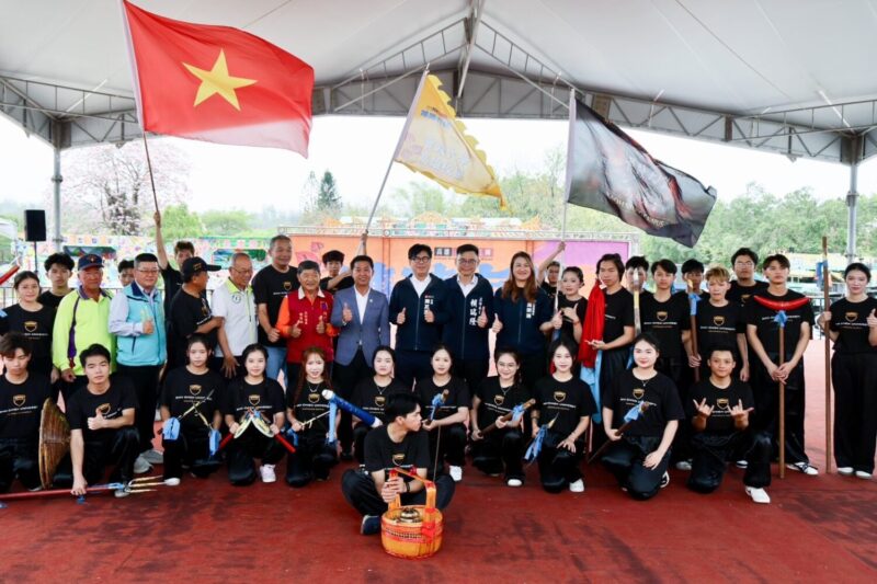 觀光局長高閔琳說明,2026高雄內門宋江陣「文武陣頭大匯演」,由在地歷史悠久的文武陣頭與各級學校進行演出,傳承內門在地豐富的文化內涵。今日表演隊伍「內門國小」,是區內唯一設有宋江陣社團的學校;讓小朋友從小扎根,並在潛移默化中學習在地文化與國家重要民俗,成為宋江技藝傳承的新生力量。「實踐大學」高雄校區則集結來自越南的國際學生,學習台灣宋江陣頭文化,並組成全新隊伍參加演出,呈現宋江陣文化跨國交流成果。