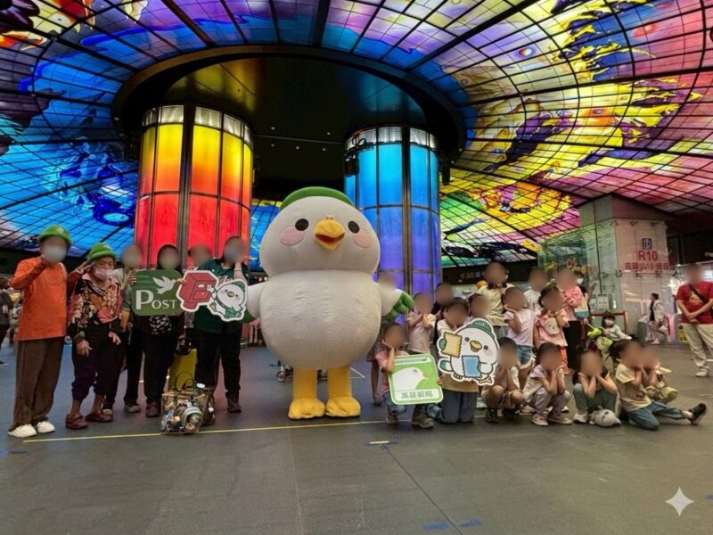 現場最受矚目的亮點,莫過於小朋友換上象徵責任與榮譽的「綠色小制服」,並與中華郵政人氣吉祥物「波波鴿」合影留念。在獨特的場域設計與絢麗光影襯托下,家長們紛紛捕捉孩子化身萌版郵差的可愛瞬間,為連假留下溫馨回憶。